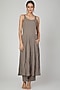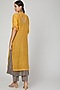 Featuring a mustard kurta in chanderi silk base with parsi embroidery. It is paired with contrasting grey pants and an inner.