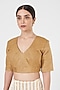 Featuring an ivory and golden saree in chanderi base with gold tissue edging. Accentuate it with statement jewellery and heels for a festive occasion or wedding.