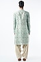 Featuring a mint green kurta in chanderi base with floral print. It is paired with contrasting ivory cotton silk patiala pants.
