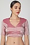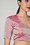 Featuring a pink blouse in tissue silk base with a v-neck and open back. This contains only one piece.