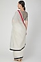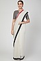 Featuring a white and black saree in chanderi base with silk border and crochet lace detailing. Style it with heels and dangler earrings for festive occasions.