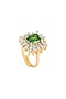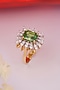 Featuring a gold finish ring studded with cubic zirconia and green stone, set in 92.5 sterling silver. Wear this at your next glamorous soiree and be the centre of attention.