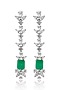 White Finish Motif & Emerald Drop Dangler Earrings In Sterling Silver