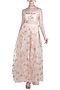 Featuring a pink crop top in net base embellished with nakshi, sequins and zari hand work. It is paired with matching waterfall skirt.