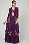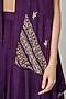 Featuring a purple cape in raw silk base with zardosi embroidery. It is paired with a matching lehenga and blouse.