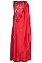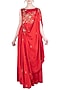 Featuring a red cape dress in satin cotton base embellished with nakshi, sequins and zari hand work.
