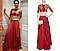 This set features a red crop top in satin cotton base woth gold zari and sequins embroidery in leaves pattern all over. It is paired with red satin cotton pleated cowl drape skirt.