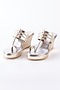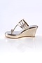 Featuring a pair of dull gold-silver wedges in faux leather base. It has a faux leather lining and 3-inch heels. Elevate your stride with timeless elegance and exceptional craftsmanship, perfect for festive occasions or wedding ceremony.