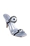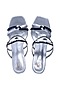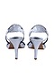 Featuring a pair of silver heels in faux leather base with cross straps and evil eye hand embroidery. It has a faux leather underlining and 4 inch heels.
