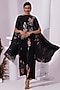 Featuring a black floral kaftan in micro pleated chiffon lurex base with hand embroidery. It is paired with pants and an inner. Accentuate it with delicate earrings and strappy heels for a stylish ensemble, ideal for brunch outings, casual get-togethers or daytime events.