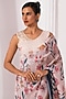 Featuring a butter cream micro-pleated pre-draped saree in viscose georgette and polyester base with hand paint and digital print. It is paired with a hand embroidered blouse. Accentuate it with statement earrings and elegant heels for a stylish ensemble, ideal for festive gatherings, cocktail evenings or refined celebrations.