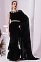 Jet Black Tissue Satin Pre-Draped Saree Set
