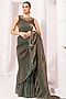 Moss Green Tissue Satin Pre-Draped Saree Set