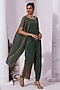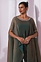 Featuring a moss green kaftan in micro pleated two tone tissue satin base with hand embroidery. It is paired with pants and an inner. Accentuate it with delicate earrings and strappy heels for a stylish ensemble, ideal for brunch outings, casual get-togethers or daytime events.