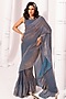 Steel Blue Tissue Satin Pre-Draped Saree Set