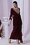 Featuring a wine red kurta in micro pleated tissue satin base with hand embroidery. It is paired with a draped dhoti and an inner. Accentuate it with statement earrings and embellished heels for a stylish ensemble, ideal for festive occasions, family celebrations or special gatherings.