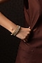 Featuring a pair of antique gold finish bangles studded with kundan polki, set in alloy. This jewellery creates a refined and graceful ensemble, ideal for weddings, festive gatherings or evening celebrations.