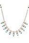Featuring an antique gold finish long necklace studded with kundan polki and green onyx, set in alloy. It is paired with a matching pair of earrings. This jewellery creates a refined and graceful ensemble, ideal for weddings, festive gatherings or evening celebrations.