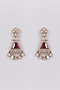 Featuring a pair of antique gold finish dangler earrings studded with kundan polki, pearls, ruby stone and green onyx, set in alloy. Perfect for grand occasions like weddings and traditional festivities.