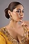Featuring a pair of antique gold finish dangler earrings studded with kundan polki, pearls, ruby stone and green onyx, set in alloy. Perfect for grand occasions like weddings and traditional festivities.