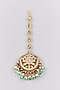 Featuring an antique gold finish maangtikka studded with kundan polki, pearls, ruby stone and green onyx, set in alloy. Perfect for grand occasions like weddings and traditional festivities.