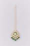 Featuring an antique gold finish maangtikka studded with kundan polki, pearls, ruby stone and green onyx, set in alloy. Perfect for grand occasions like weddings and traditional festivities.