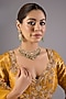 Featuring an antique gold finish necklace studded with kundan polki, pearls, ruby stone and green onyx, set in alloy. It is paired with a matching pair of earrings. Perfect for grand occasions like weddings and traditional festivities.