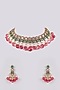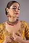 Featuring an antique gold finish necklace studded with kundan polki, pearls, ruby stone and green onyx, set in alloy. It is paired with a matching pair of earrings. Perfect for grand occasions like weddings and traditional festivities.