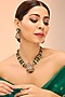 Featuring a gold finish necklace studded with green kundan polki, set in brass. It is paired with a matching pair of earrings. Perfect wear for festive occasions or wedding ceremonies.