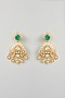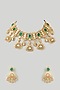 Featuring a gold finish necklace studded with green moissanite, set in brass. It is paired with a matching pair of earrings. Perfect wear for festive occasions or wedding ceremonies.