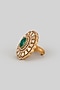 Featuring a gold finish ring studded with green moissanite polki, set in brass. Add a touch of sparkle to your ensemble, perfect for wedding ceremonies or festive celebrations.
