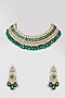 Featuring a gold finish choker necklace studded with kundan polki and green onyx drops, set in alloy. It is paired with a matching pair of earrings.