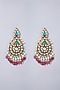 Featuring a pair of gold finish earrings studded with kundan polki, pink drops, and green onyx, set in mixed metal.