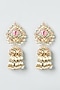 Featuring a pair of gold finish jhumka earrings studded with red and green jadau stones, set in alloy.