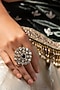 Featuring a gold finish ring studded with kundan polki and blue sapphire stone, set in brass. Perfect wear for festive occasions or wedding ceremonies.