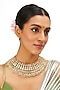Featuring a gold finish necklace studded with kundan polki and fluorite drops, set in brass. Perfect choice for weddings, parties, and other Indian festivities.