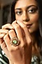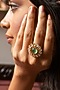 Featuring a gold finish ring studded with kundan polki and fluorite stone, set in brass. Perfect wear for festive occasions or wedding ceremonies.