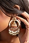 Featuring a pair of gold finish chandbali earrings studded with kundan polki, pink pearls, and green onyx, set in brass. Perfect wear for festive occasions or wedding ceremonies.