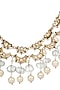 Featuring a gold finish long necklace studded with kundan polki, green onyx and pearls, set in alloy. This jewellery creates a refined and graceful ensemble, ideal for weddings, festive gatherings or evening celebrations.