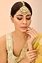 Featuring a gold finish maangtikka studded with kundan polki and green onyx, set in brass. Perfect wear for festive occasions or wedding ceremonies.