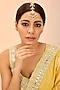 Featuring a gold finish maangtikka studded with kundan polki and green onyx, set in brass. Perfect wear for festive occasions or wedding ceremonies.