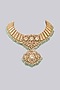 Featuring a gold finish necklace studded with kundan polki and green onyx, set in brass. Perfect choice for weddings, parties, and other Indian festivities.