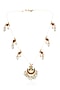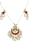 Featuring a gold finish necklace studded with kundan polki, green onyx and pearls, set in alloy. This jewellery creates a refined and graceful ensemble, ideal for weddings, festive gatherings or evening celebrations.