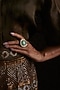 Featuring a gold finish ring studded with kundan polki and mint fluorite stone, set in alloy. This jewellery creates a refined and graceful ensemble, ideal for weddings, festive gatherings or evening celebrations.