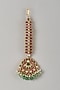 Featuring a gold finish maangtikka studded with kundan polki and multi-colored stones, set in mixed metal. Perfect choice for festive celebrations, wedding or sangeet ceremonies.