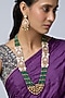 Featuring a gold finish necklace studded with kundan polki and multi-colored stones, set in mixed metal. It is paired with a matching pair of earrings. Perfect choice for festive celebrations, wedding or sangeet ceremonies.
