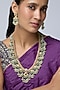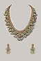Featuring a gold finish necklace studded with kundan polki and multi-colored stones, set in mixed metal. It is paired with a matching pair of earrings. Perfect choice for festive celebrations, wedding or sangeet ceremonies.