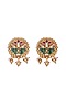 Featuring a gold finish necklace studded with kundan polki and gold balls, set in brass. It is paired with a matching pair of earrings. Perfect wear for festive occasions or wedding ceremonies.