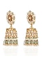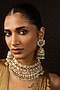 Featuring a gold finish choker necklace studded with kundan polki, pearls and green onyx, set in alloy. It is paired with a matching pair of earrings. This jewellery creates a refined and graceful ensemble, ideal for weddings, festive gatherings or evening celebrations.