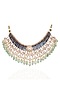 Featuring a gold finish choker necklace studded with kundan polki, green onyx and pearls, set in alloy. It is paired with a matching pair of earrings. This jewellery creates a refined and graceful ensemble, ideal for weddings, festive gatherings or evening celebrations.
